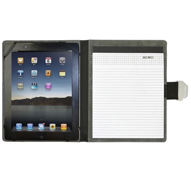Porta Ipad Damasco Funciones: Cierre con elástico y hebilla. Stand para I-Pad. Block de Notas. Compartimento exterior para documentos.