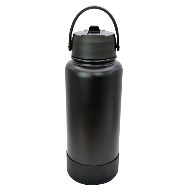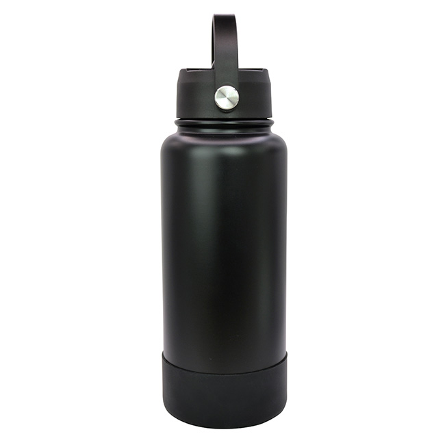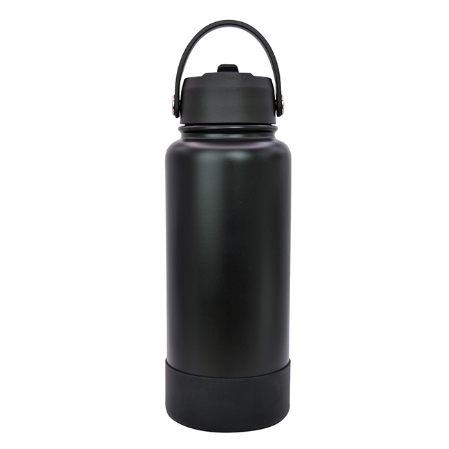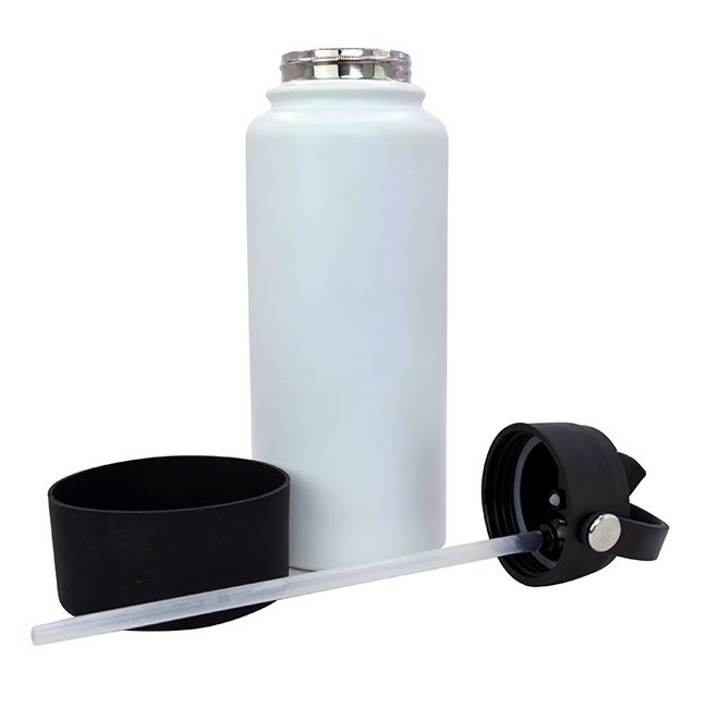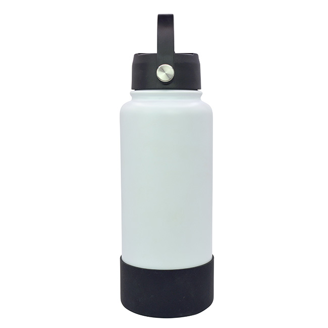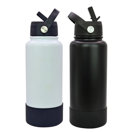 Termo Sabino l Capacidad: 1 lt. l Sistema de doble pared al vacío. l Tapa en rosca con asa rotativa, boquilla deslizable y popote. l Funda protectora antiderrapente en base l Colores: Blanco y Negro