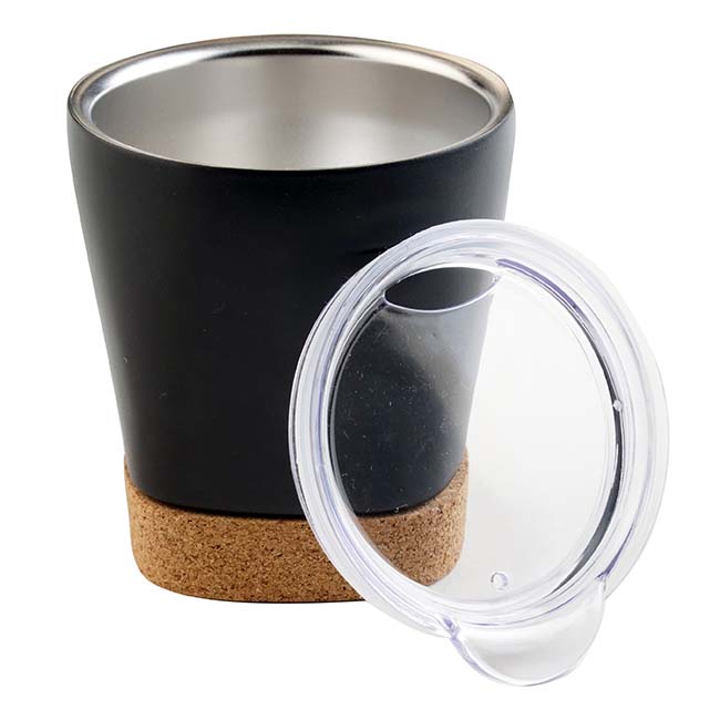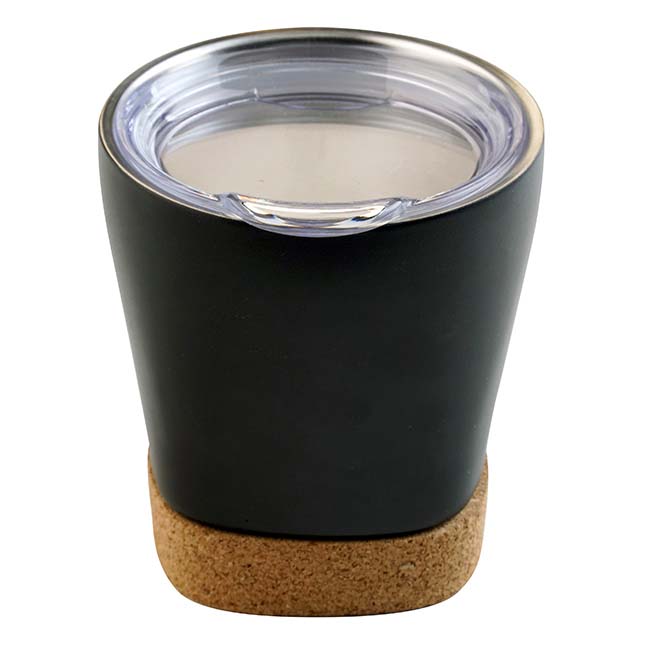 Capacidad: 286 ml. Sistema de doble pared al vacío. Base en corcho. Color: Negro.