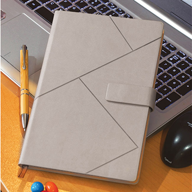 Libreta con 90 hojas rayadas tipo planeador atemporal. Cinta divisoria. Porta bolígrafos. Colores: Gris y Negro