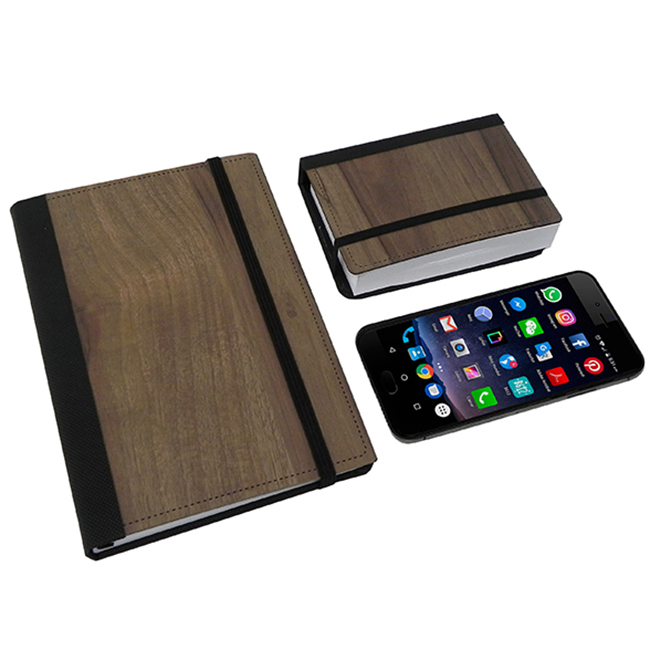 Block de Notas Boston Cubierta café: Melamina ulta delgada emplamada con curpiel. Funciones: Contiene 200 hojas. Cierre en elástico