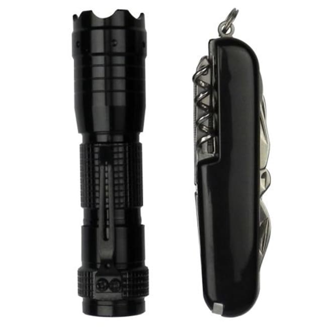 Kit Carrera Funciones: Set de 3 piezas. Incluye : Bolsa ajustable al cinto con prácticos compartmentos ; Navaja multi-funcional y Linterna
